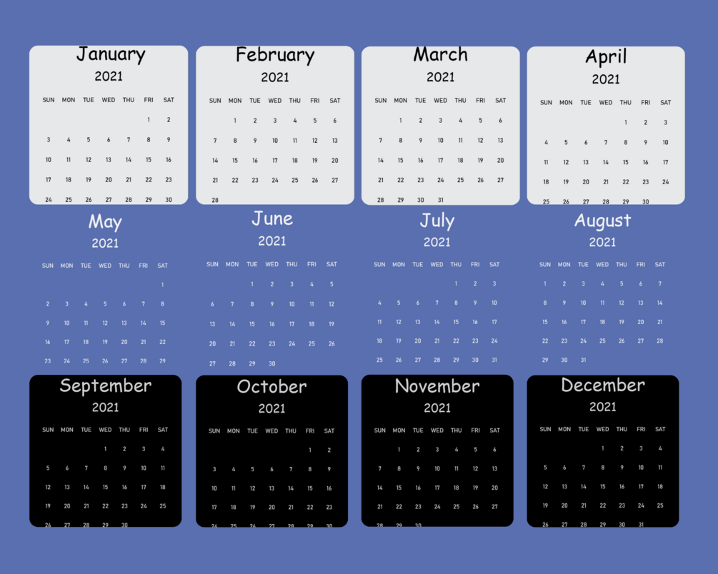 A 2021 minimal calendar. Perfect for your office or bedroom.